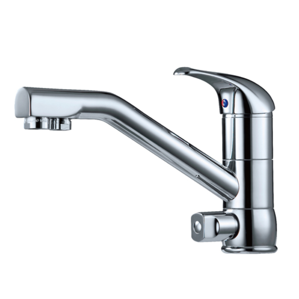 A dynamic, dual handle mixer, the Chrome 3 Way Mixer Standard provides with tap water from the main handle, and with filtered water from the lower handle. There are two channels, one for tap water and one for filtered. There are separate tubes inside the faucet too. So there’s absolutely no mixing of sources.